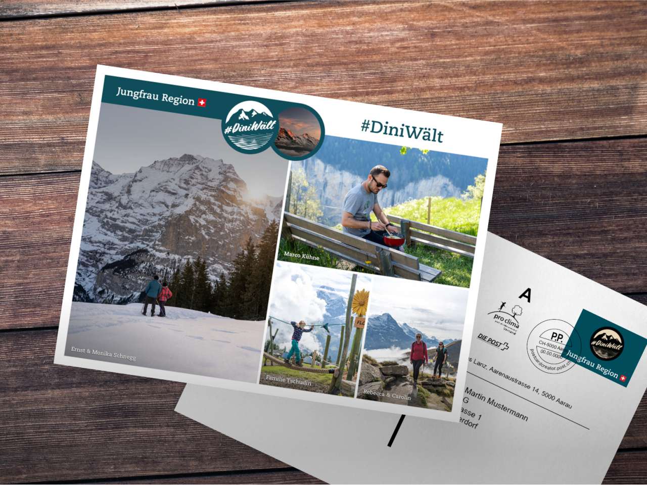 Zusammen mit der Webseite discover.jungfrauregion.swiss und dem Explorer-Wettbewerb wurde das neue Label #DiniWält entworfen.