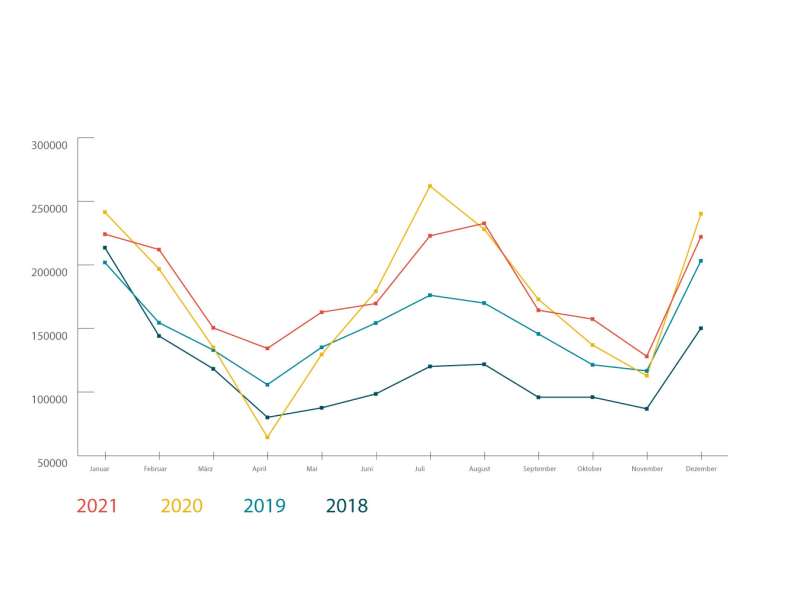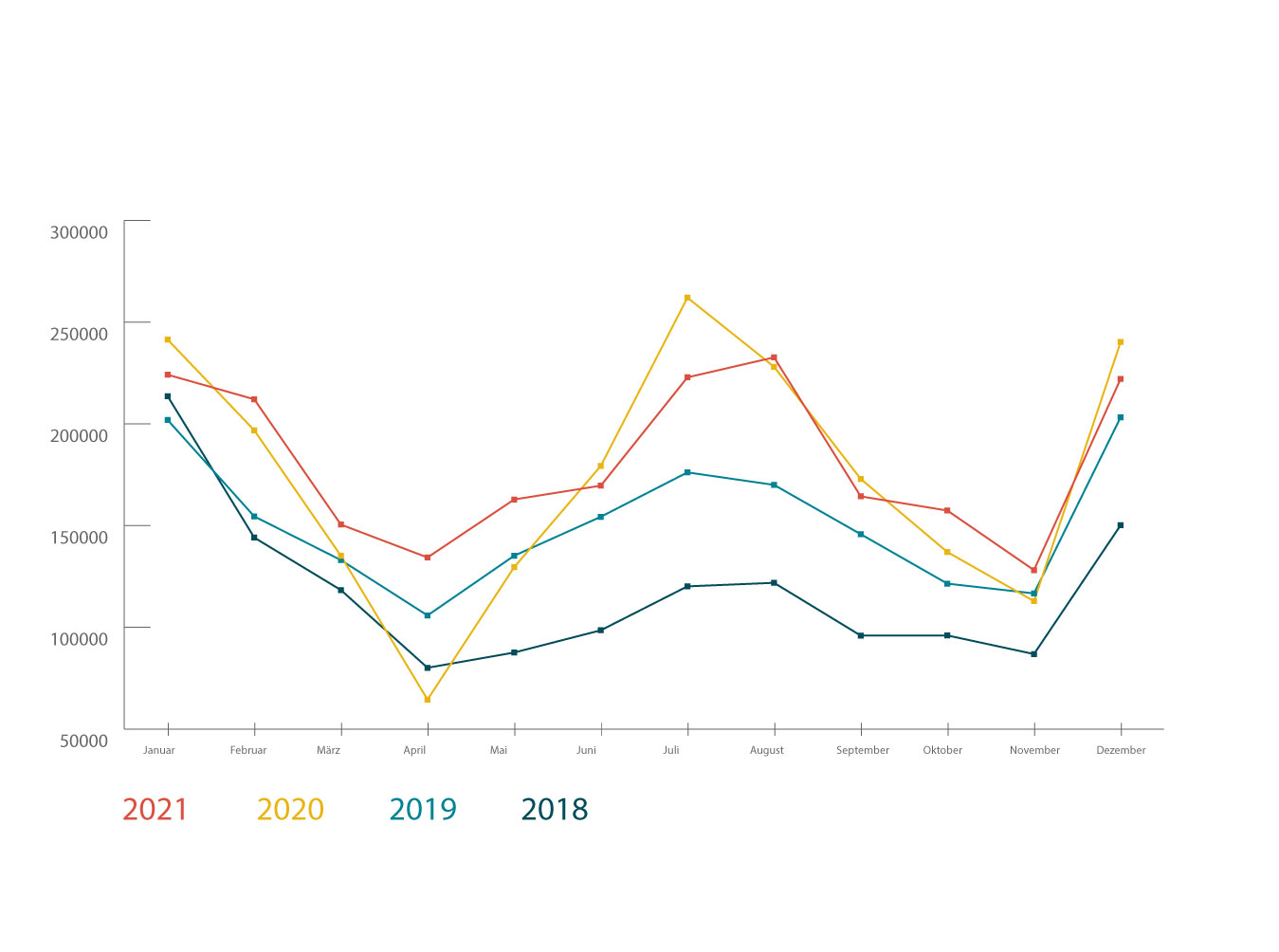 Die folgende Grafik zeigt die Zugriffe auf die Webseiten der Jungfrau Region.