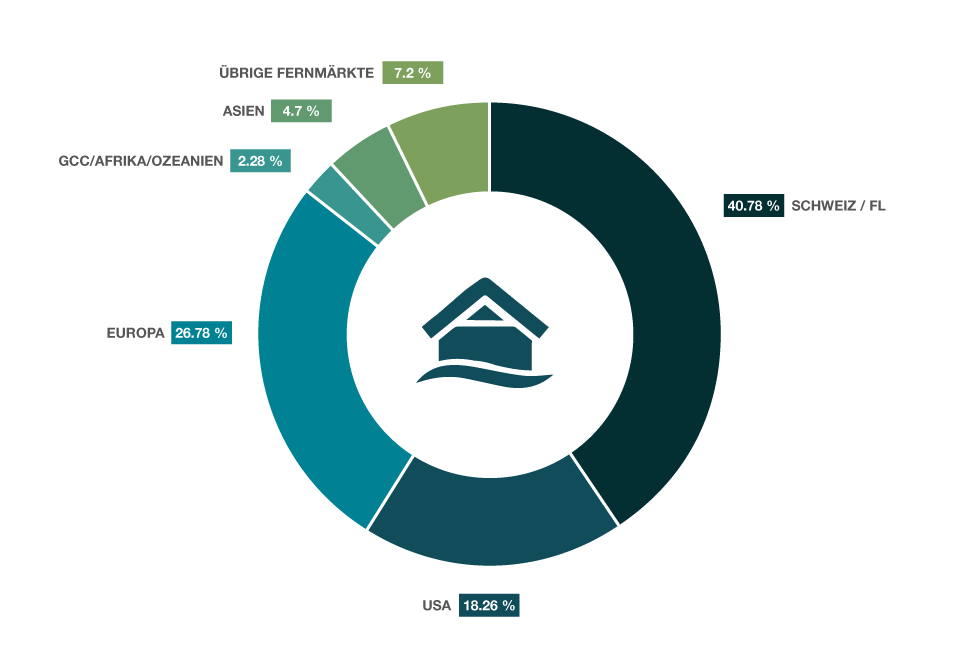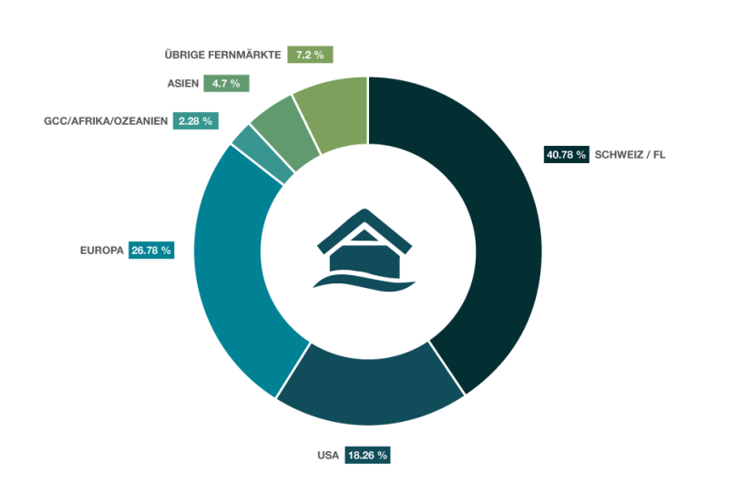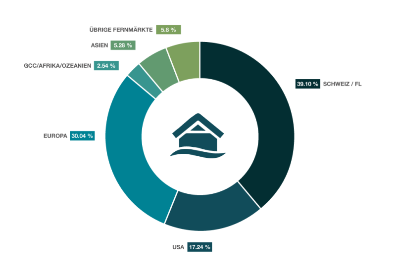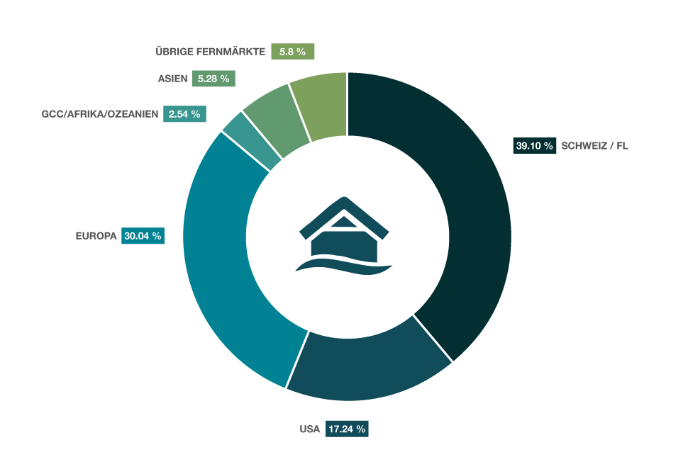Folgend sind die Marktanteile je Land bei den Ferienwohnungen, gemessen an den Logiernächten in der gesamten Jungfrau Region ersichtlich.